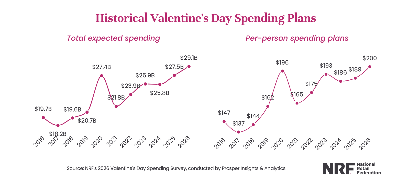 “Valentine’s Day is a cherished holiday that resonates with many Americans, as seen with expected record-breaking spending this year,” remarked Katherine Cullen, NRF Vice President of Industry and Consumer Insights, in the January 27, 2026 press release.