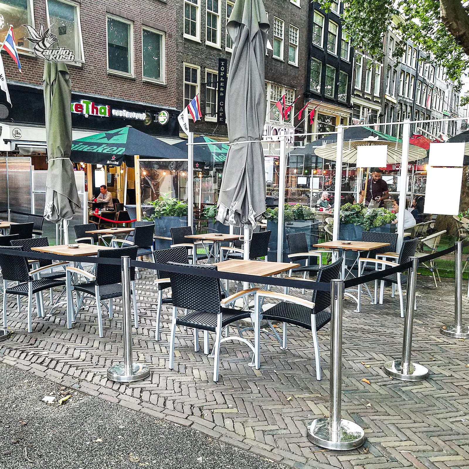 Seating is available both inside, on 3-levels, or outside, on their large outdoor terrace, which overlooks the Herengracht. Coffeeshop The Bushdocter offers an assortment of bongs and rigs to enjoy your coffeeshop purchases with. The glass is sanitized after every session, to ensure cleanliness. Cannabis products do bring on cottonmouth, and Coffeeshop The Bushdocter has a variety of great beverages including juice, soda (pop), and barista style café selections.