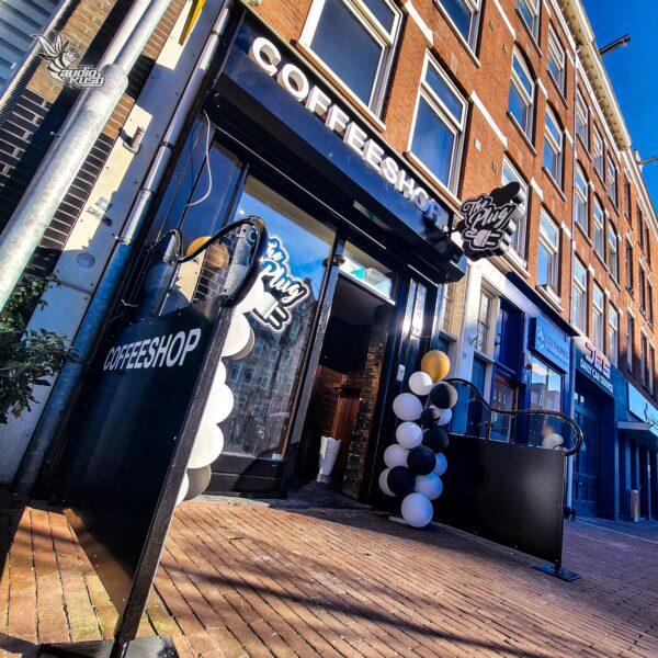 The Plug West operates as a take-away only coffeeshop, inside the site of the former Coffeeshop Hugo De Groot.