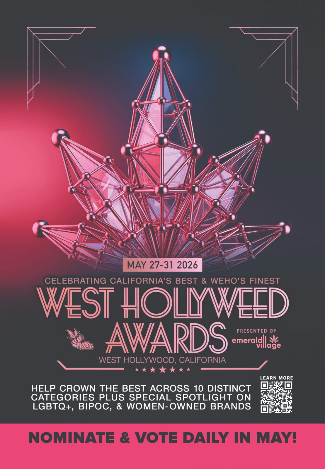 In May 2026, global industry spotlight is on West Hollywood for the debut of the West Hollyweed Awards. Presented by Emerald Village and curated by AudioKush—the team behind the prestigious Amsterdam Coffeeshop Awards—this landmark event celebrates California’s premier cannabis products, top-tier brands, and visionary community leaders through two distinct pillars of recognition.