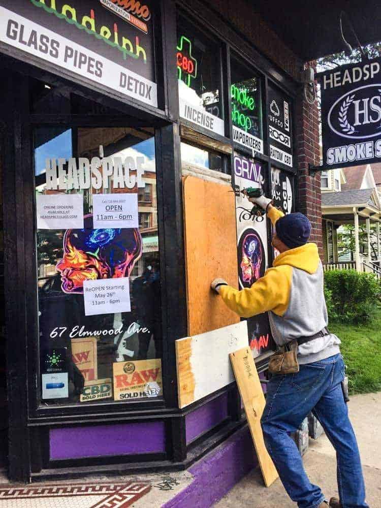 Headspace Glass Gallery in Buffalo, New York was broken into and looted following a protest Saturday night. Protestors took to the streets of Buffalo this weekend in response to continued incidences of police brutality occurring nationwide, most recently resulting in the death of George Floyd by police.