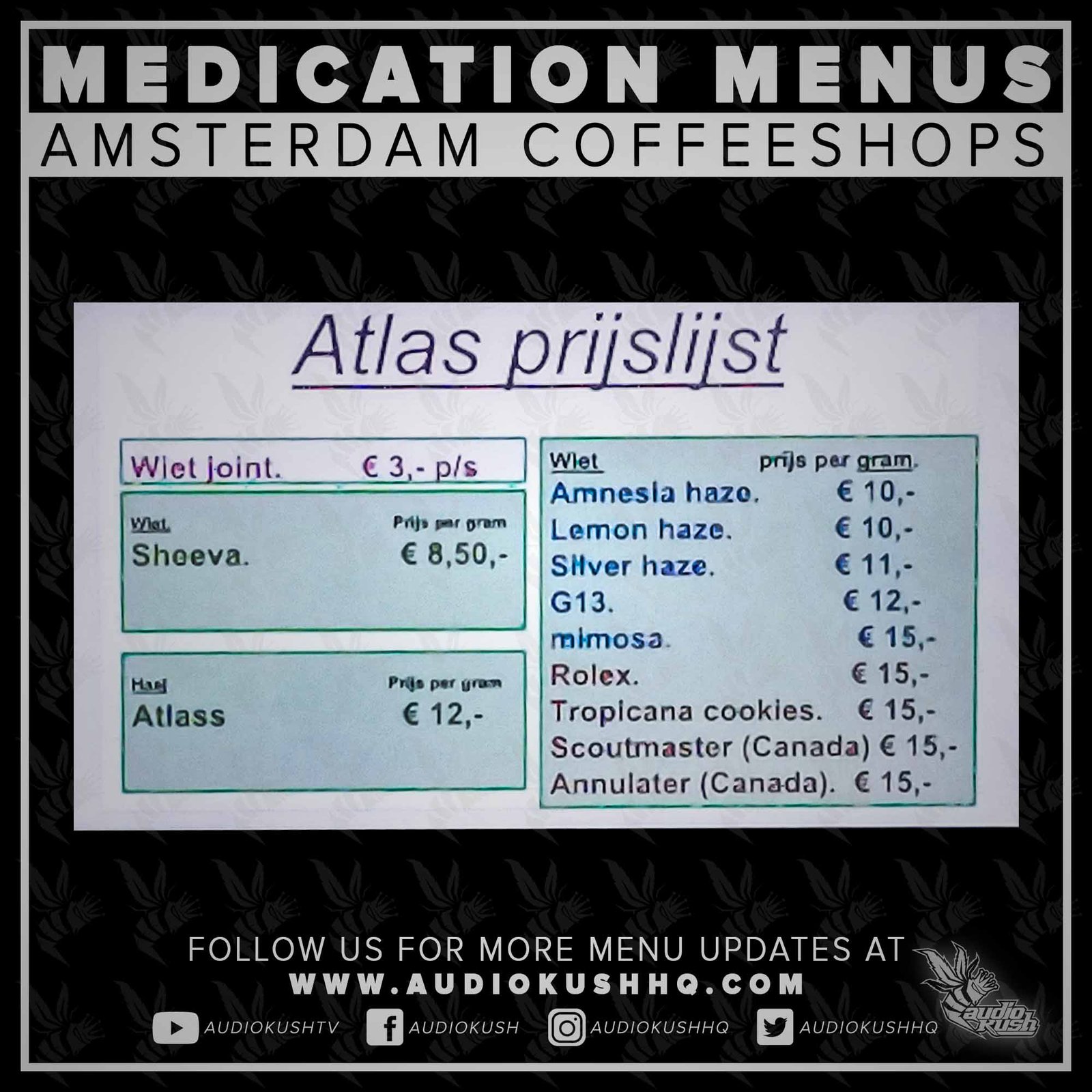 Coffeeshop Atlas is located at Parlevinker 8, 1034 PZ Amsterdam, Netherlands.
