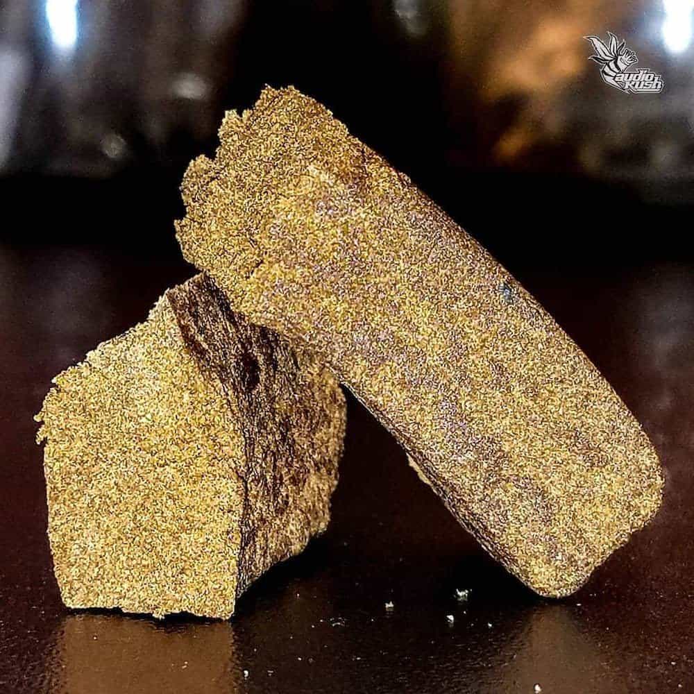 Hash compressed kief, which further increases its density and, therefore, the potency of the trichomes.